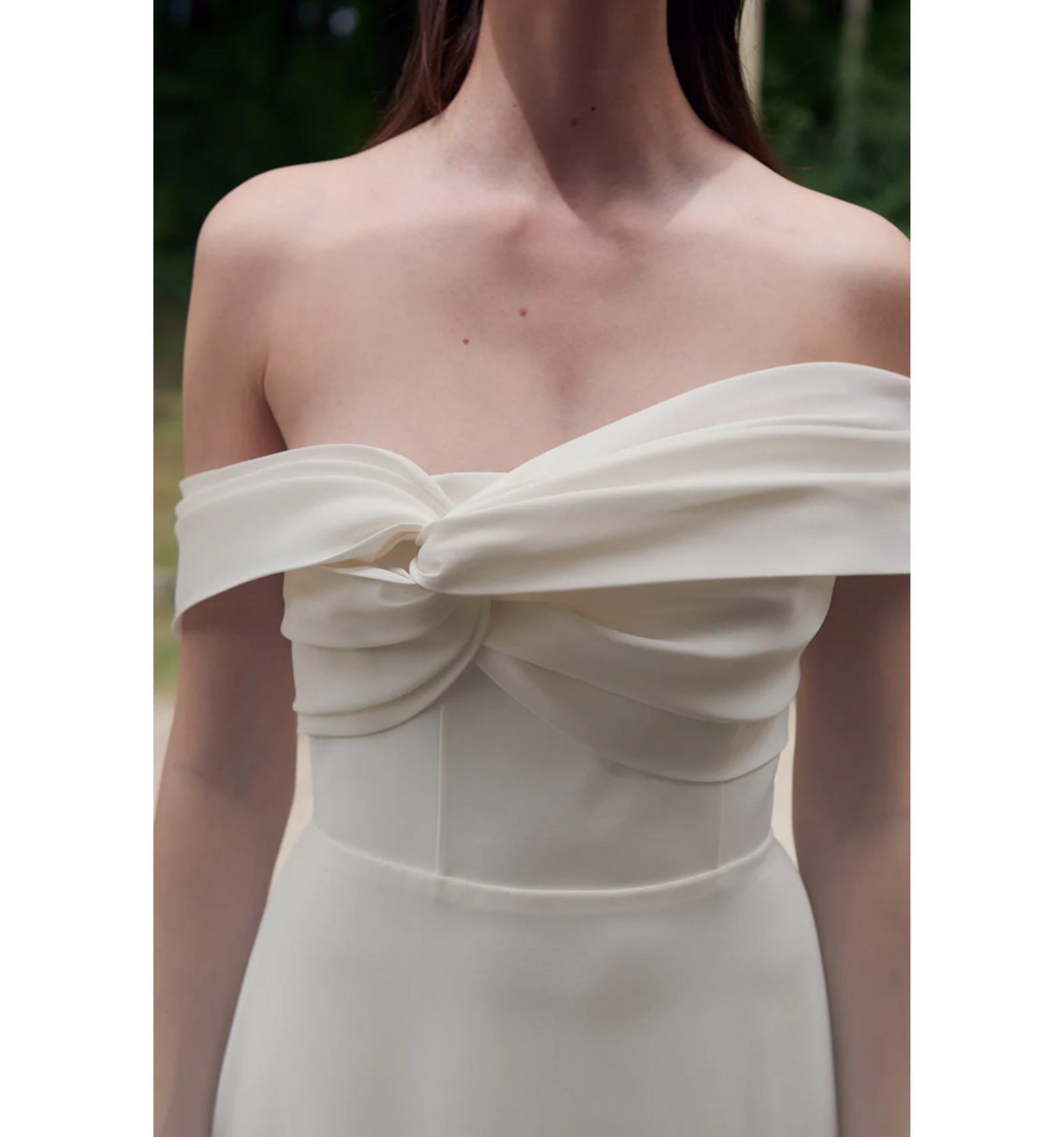 Cross-over draped bodice highlighting the shoulders