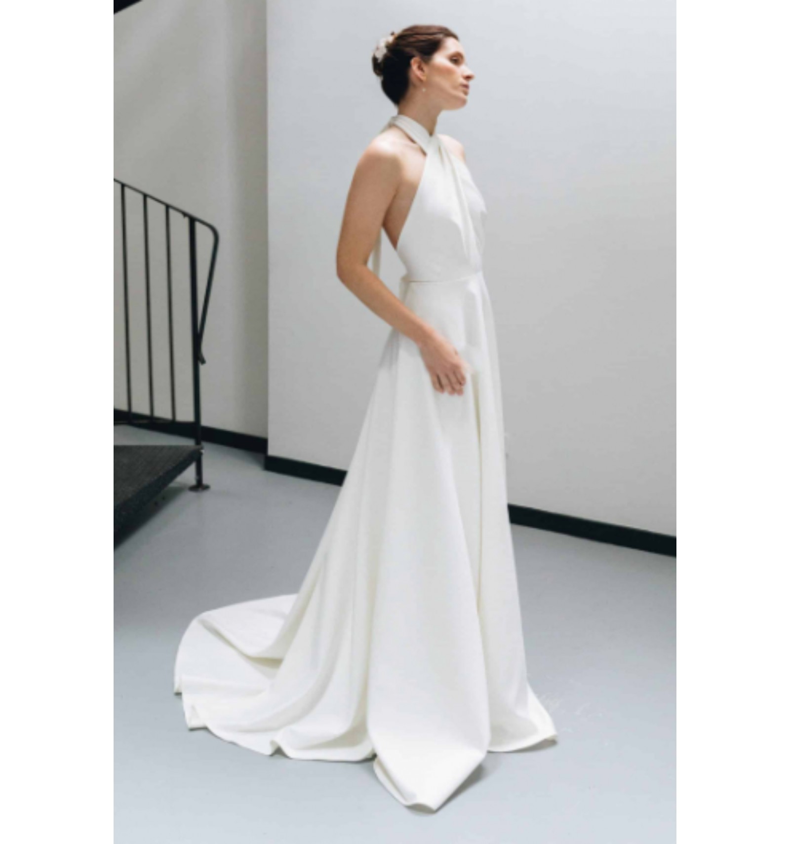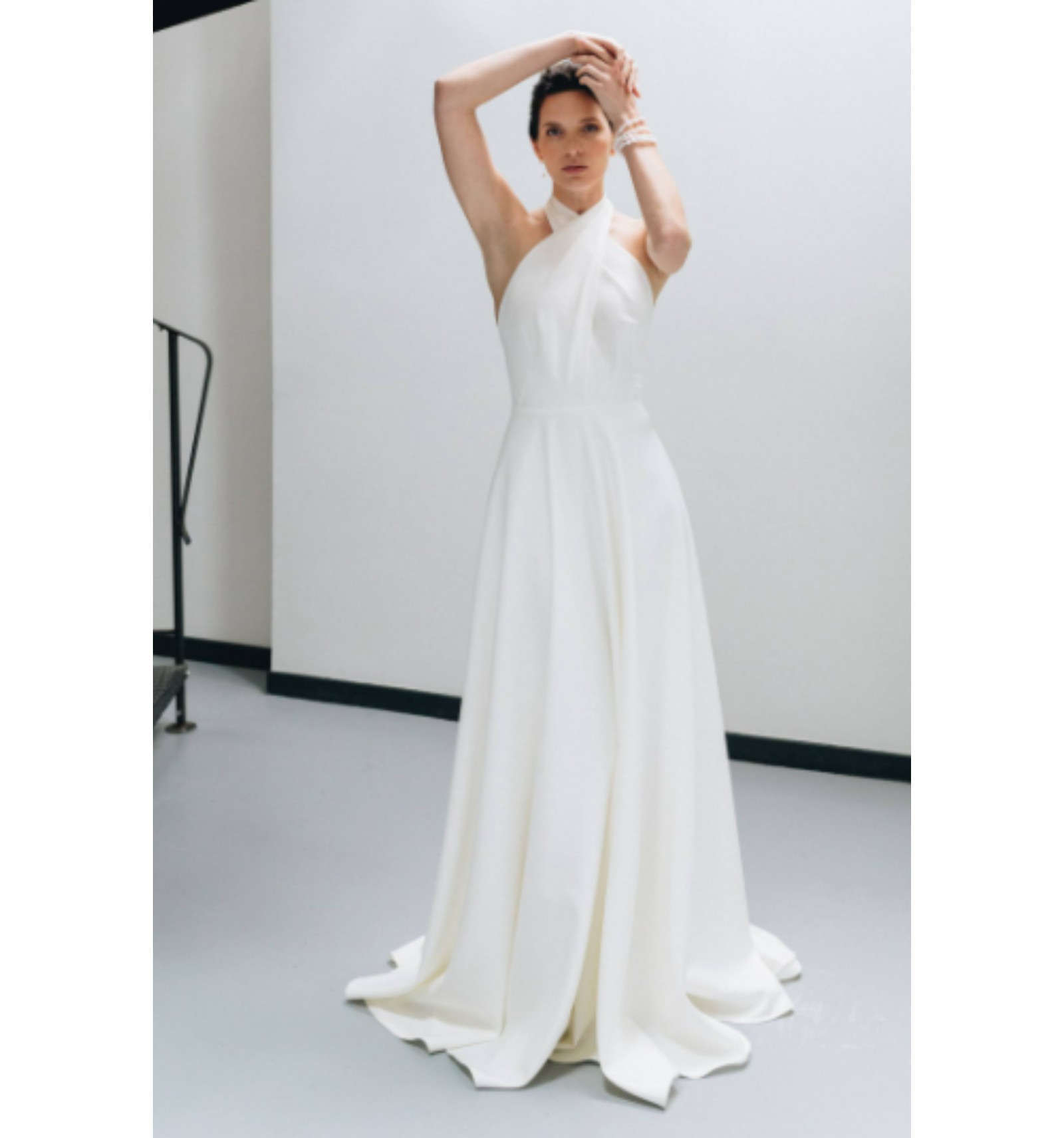 Its luminous and luxurious duchess satin creates a perfectly structured silhouette: a full yet controlled skirt, clean lines, and an elegant presence. OLCA embodies refined and timeless beauty, designed for brides who desire a strong, feminine, and iconic look.