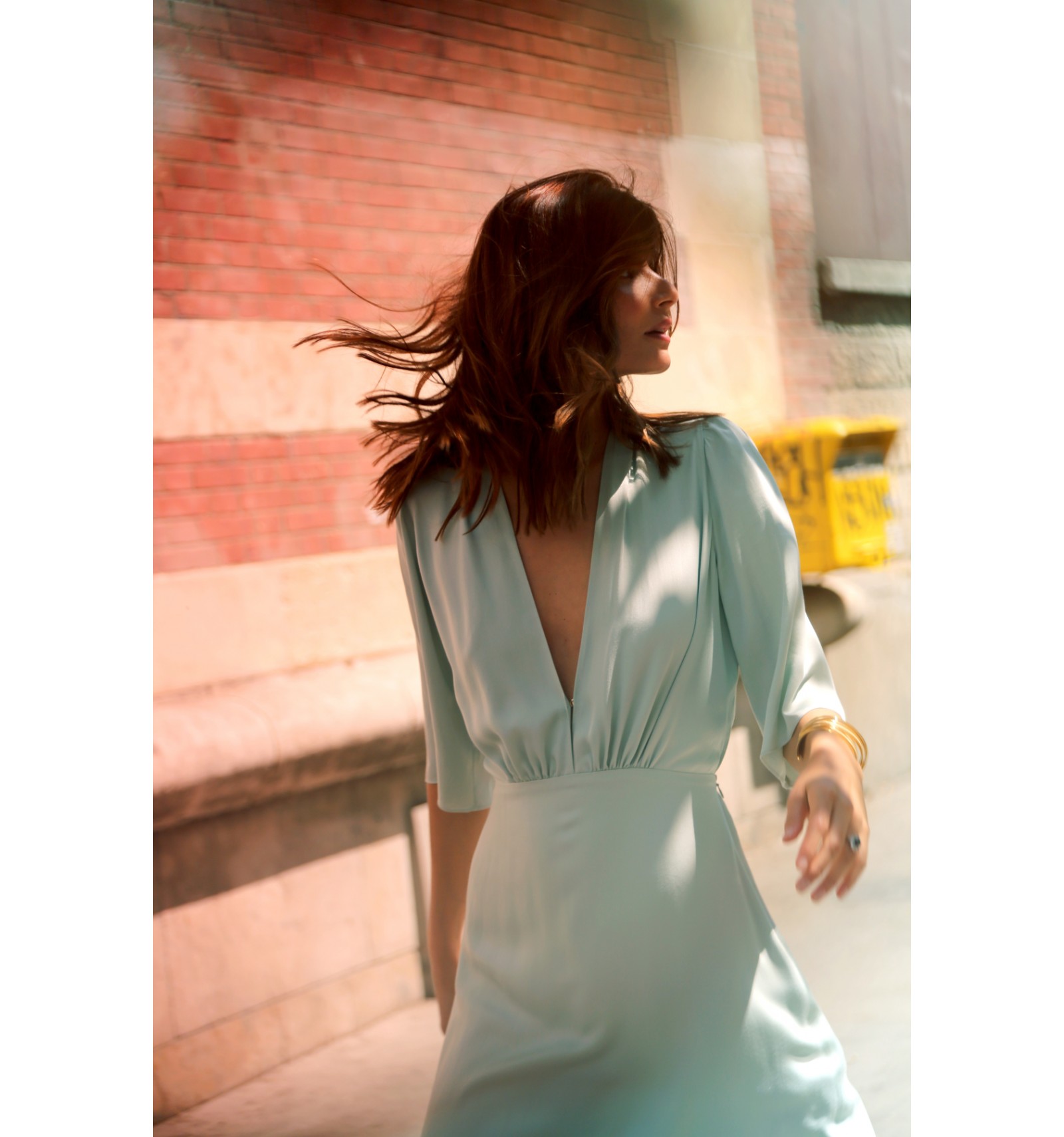 The Fontainebleau Dress is the perfect choice for your special occasions. Its plunging neckline and elegant midi cut enhance the silhouette with sophistication. The high neckline at the back adds a refined and modern touch.