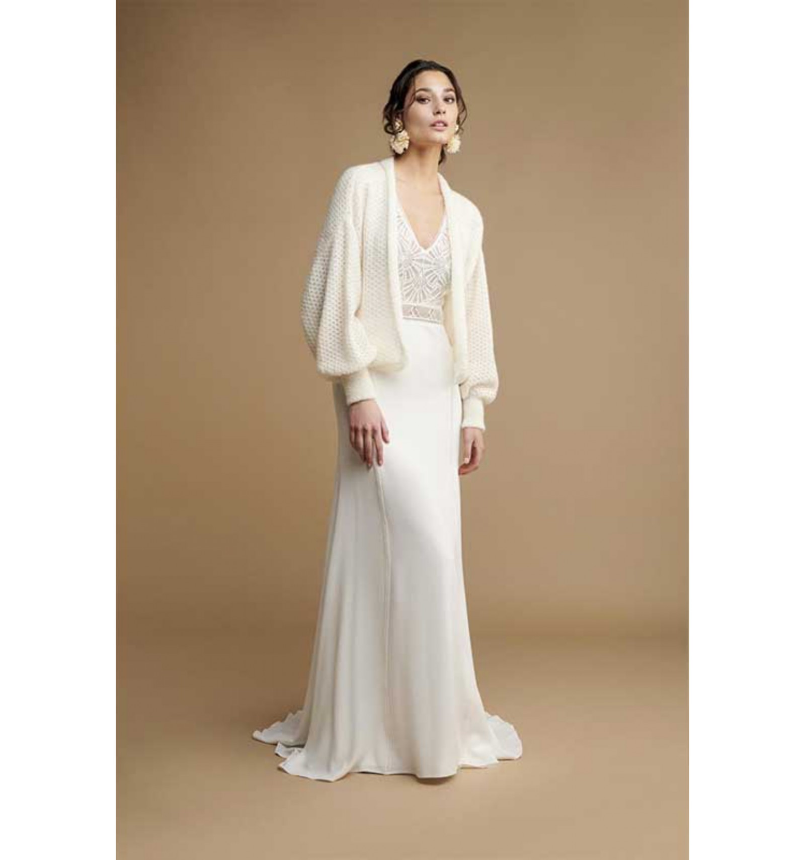 Feel free to contact us to come and try on this dress in our bridal outlet in Paris, or for more information if you wish to purchase it online. You can have your wedding dress altered up to two sizes smaller by our seamstress.