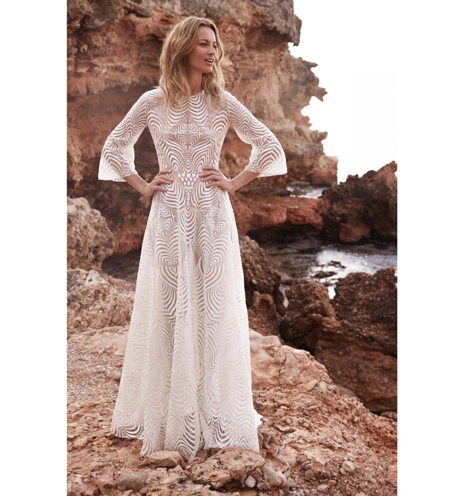 La robe Saly de Margaux Tardits allie caractère et élégance. Réalisée en tulle brodé ivoire, elle est équipée de manches pagode et d’une encolure ras du cou. Le dos est plein et se ferme par un zip.
