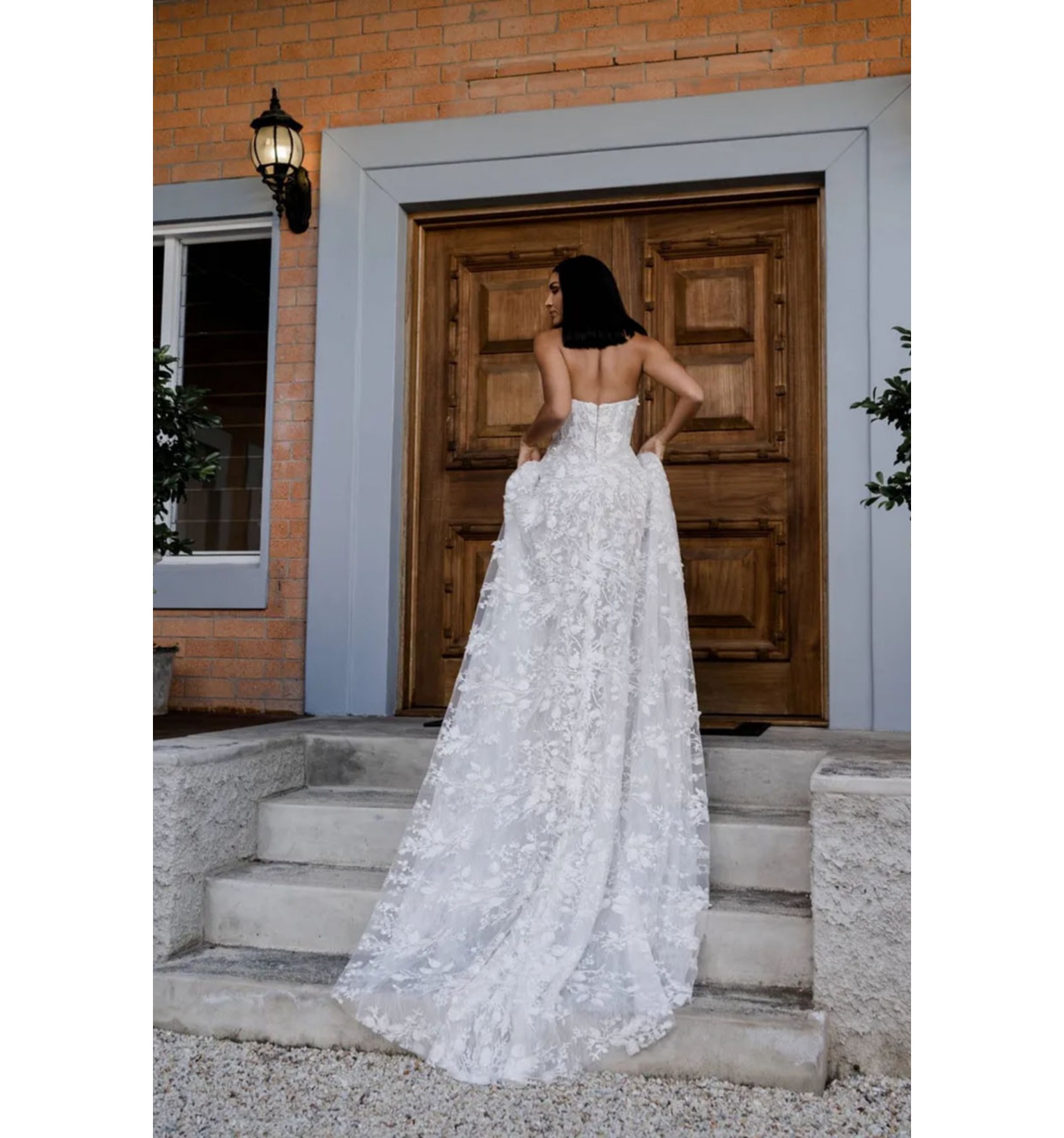 La robe Penny Flowy est une création Made With Love à l’allure romantique, dotée d’un corsage sans bretelles structuré avec un soutien interne type « bra » pour confort et maintien. Elle est ornée d’une dentelle florale 3D délicate qui s’étend sur toute la jupe A-line fluide, créant une silhouette légère et élégante. Le dos est intégralement en dentelle pour une finition sophistiquée, et des manches bardot détachables peuvent être ajoutées pour personnaliser le style.