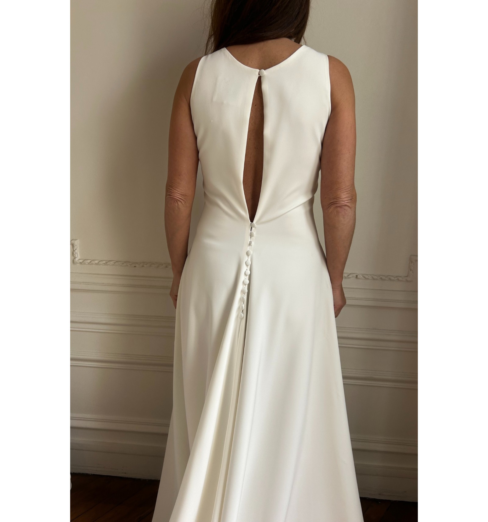 N'hésitez pas à nous solliciter pour venir essayer cette robe dans notre outlet de robes de mariée à Paris, ou pour plus d'informations si vous souhaitez l'acheter en ligne. Vous pouvez faire retoucher votre robe de mariée jusqu'à deux tailles en dessous par notre couturière.