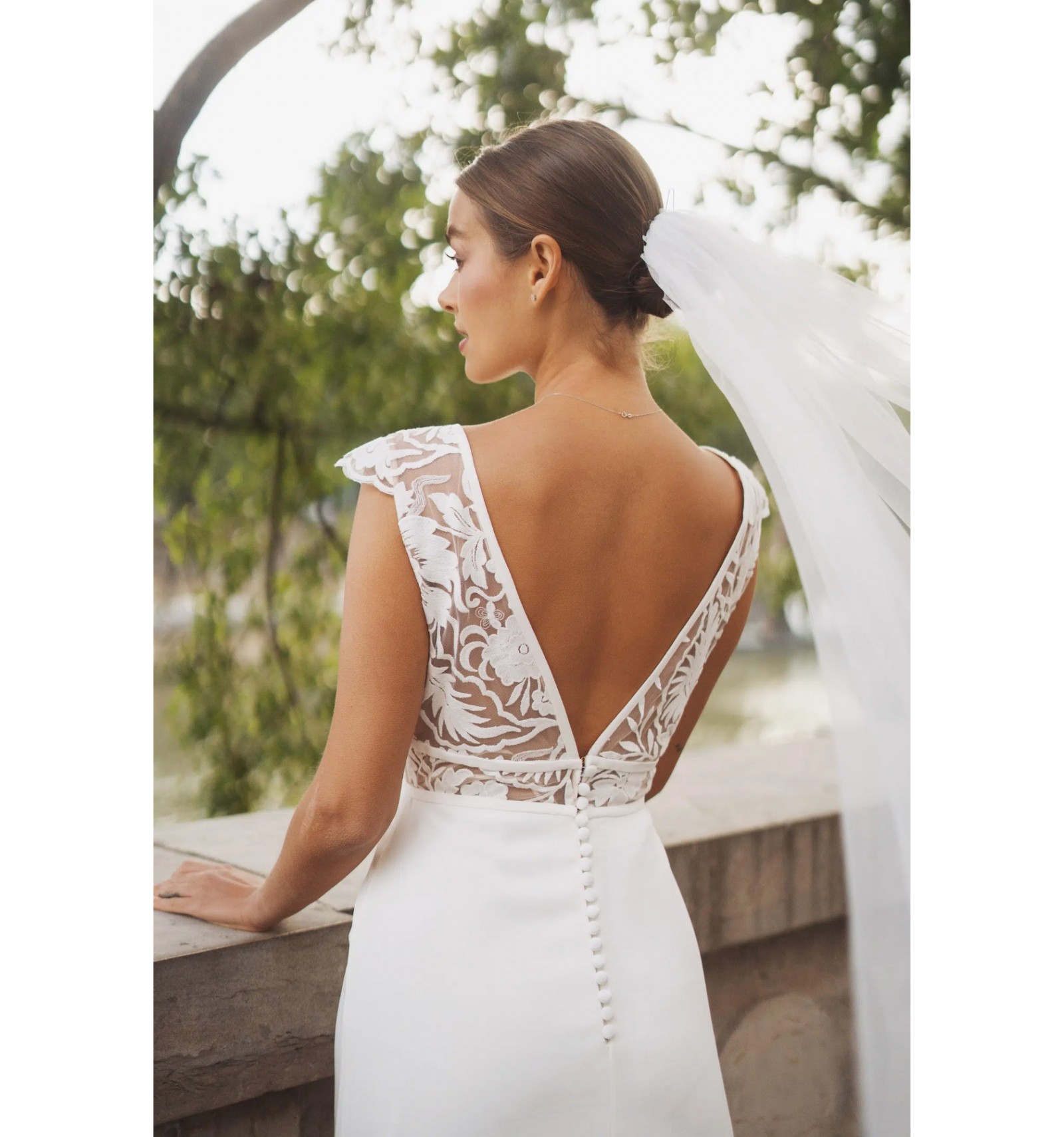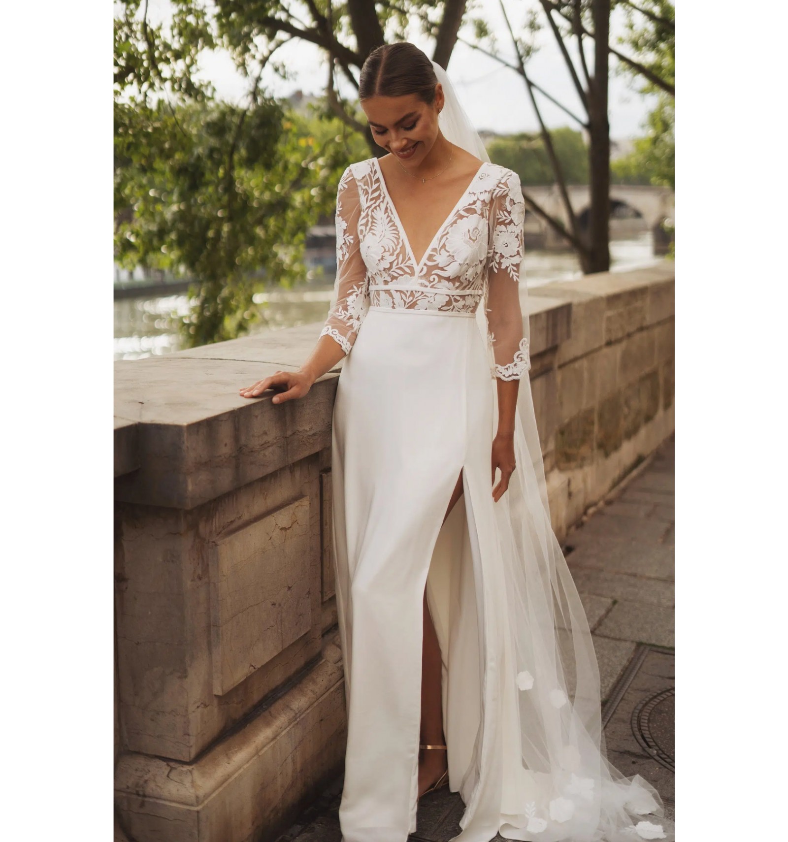 N'hésitez pas à nous solliciter pour venir essayer cette robe dans notre outlet de robes de mariée à Paris, ou pour plus d'informations si vous souhaitez l'acheter en ligne. Vous pouvez faire retoucher votre robe de mariée jusqu'à deux tailles en dessous par notre couturière.