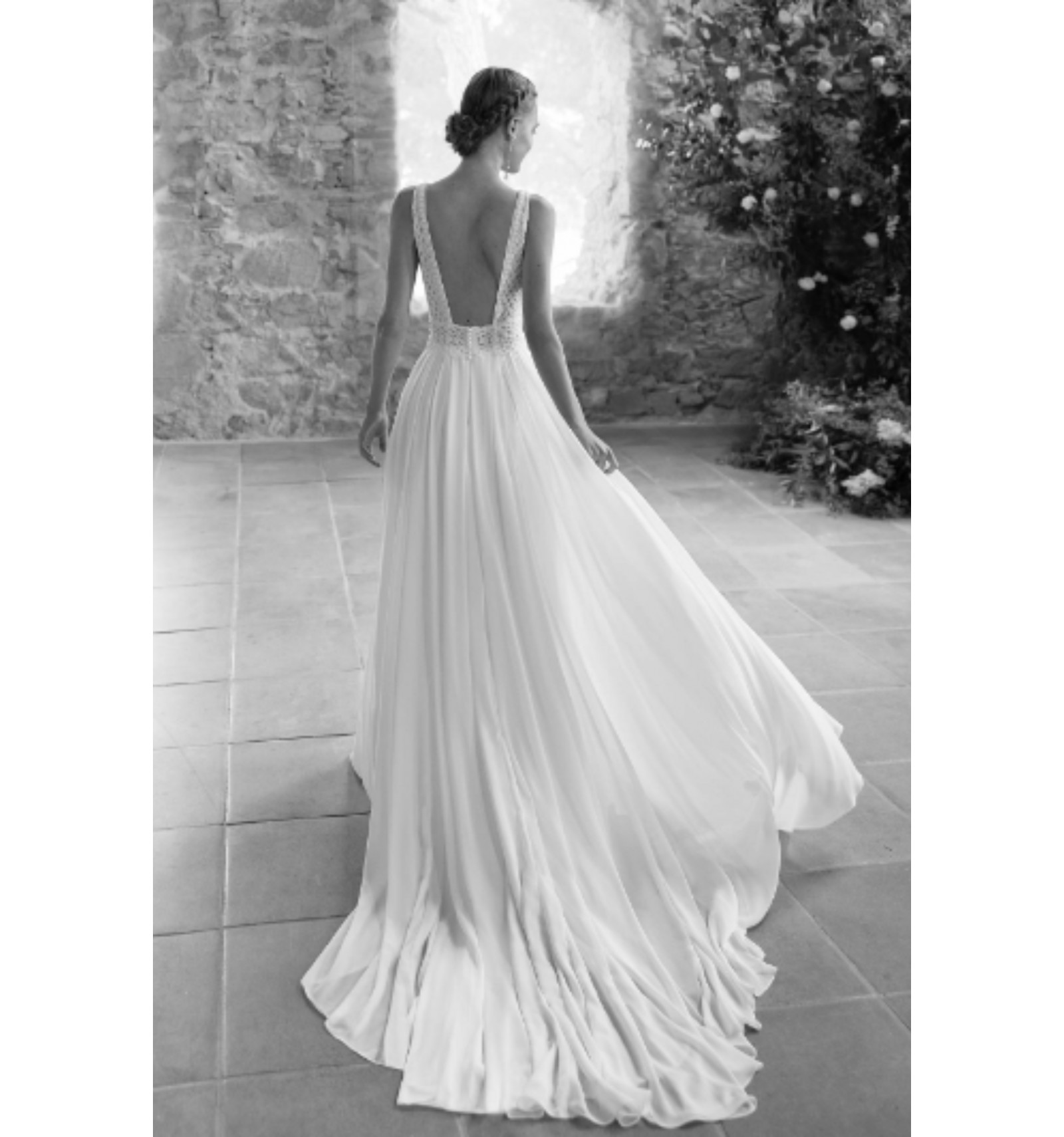 N'hésitez pas à nous solliciter pour venir essayer cette robe dans notre outlet de robes de mariée à Paris, ou pour plus d'informations si vous souhaitez l'acheter en ligne. Vous pouvez faire retoucher votre robe de mariée jusqu'à deux tailles en dessous par notre couturière.