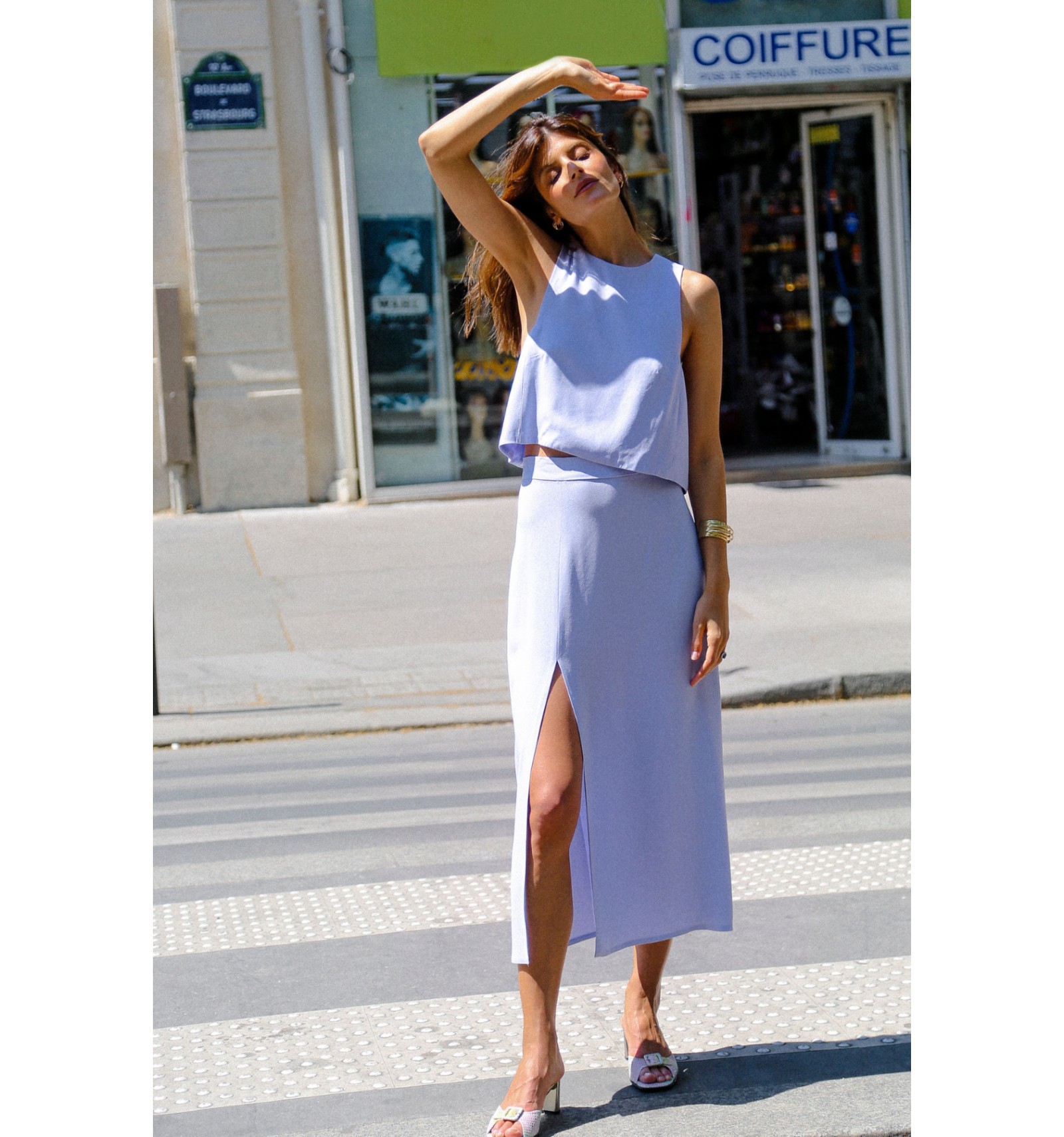 Jupe midi Prune à la coupe épurée, sublimée par une fente frontale élégante. Sa matière fluide et sa taille ajustée dessinent une silhouette féminine et moderne.