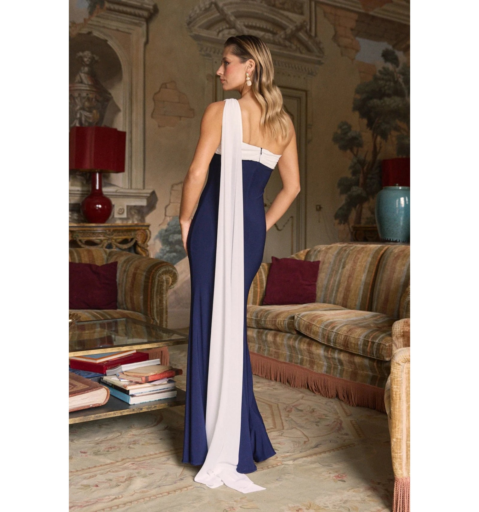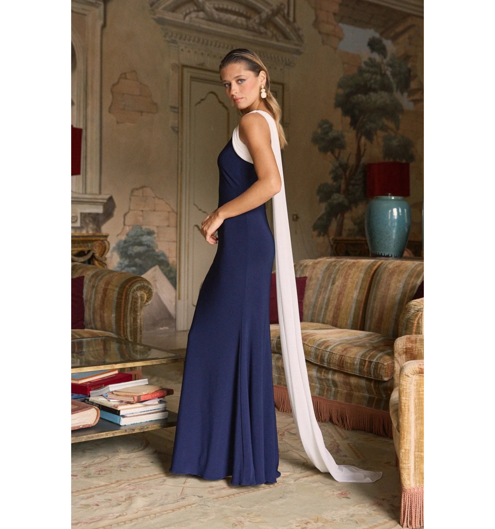 Helena est une robe de soirée d’inspiration classique en maille lisse. Décolleté asymétrique et drapé léger, avec une jupe longue qui épouse la silhouette avec élégance. Son châle multi-positions apporte une touche fluide et raffinée.